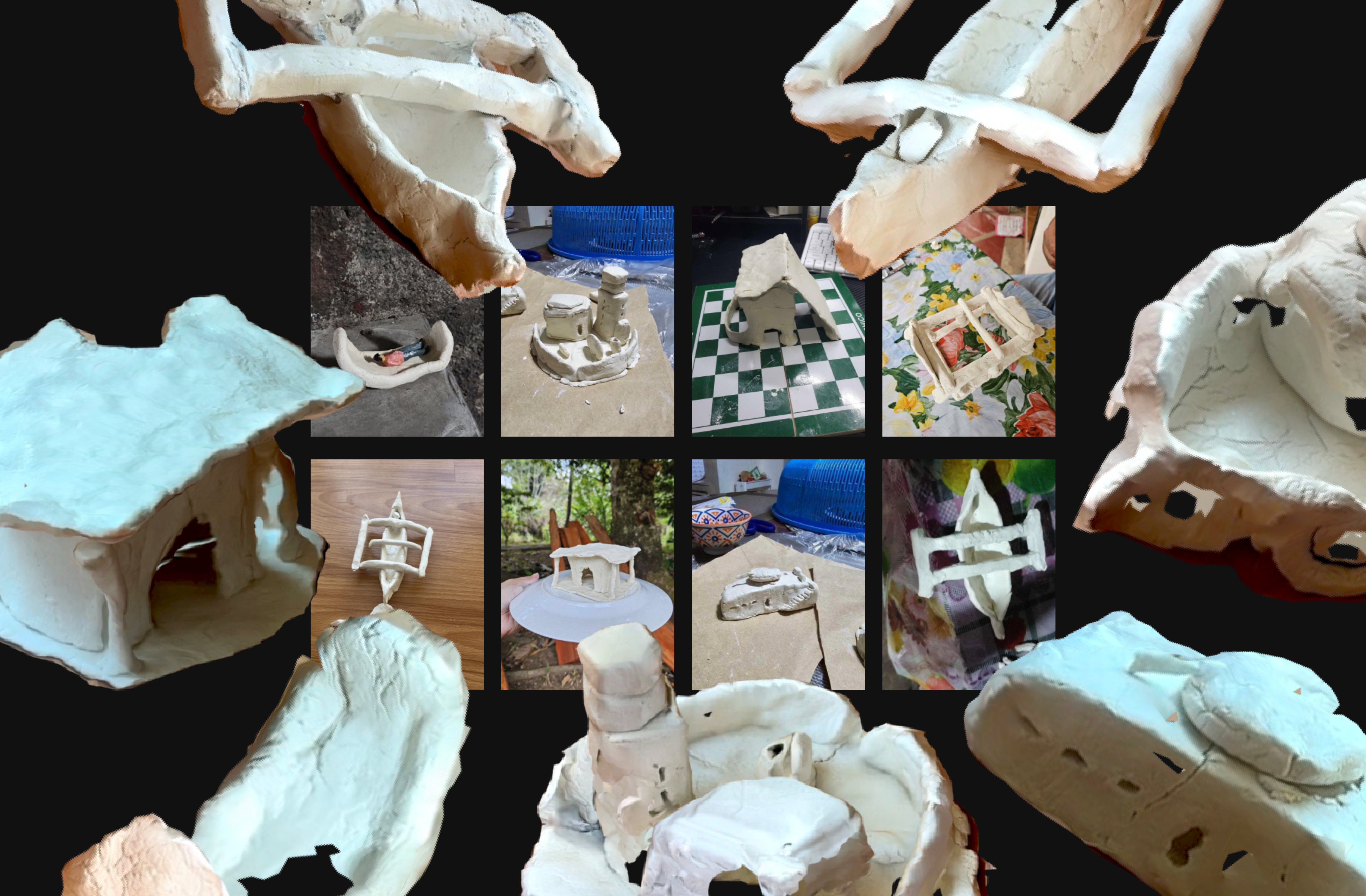 I make artifacts and structures that don’t rush to resolve themselves. Irregular forms hold tension; details and inconsistencies create pause. The work is meant to be used—like a navigational tool—for living inside increasingly specific conditions.